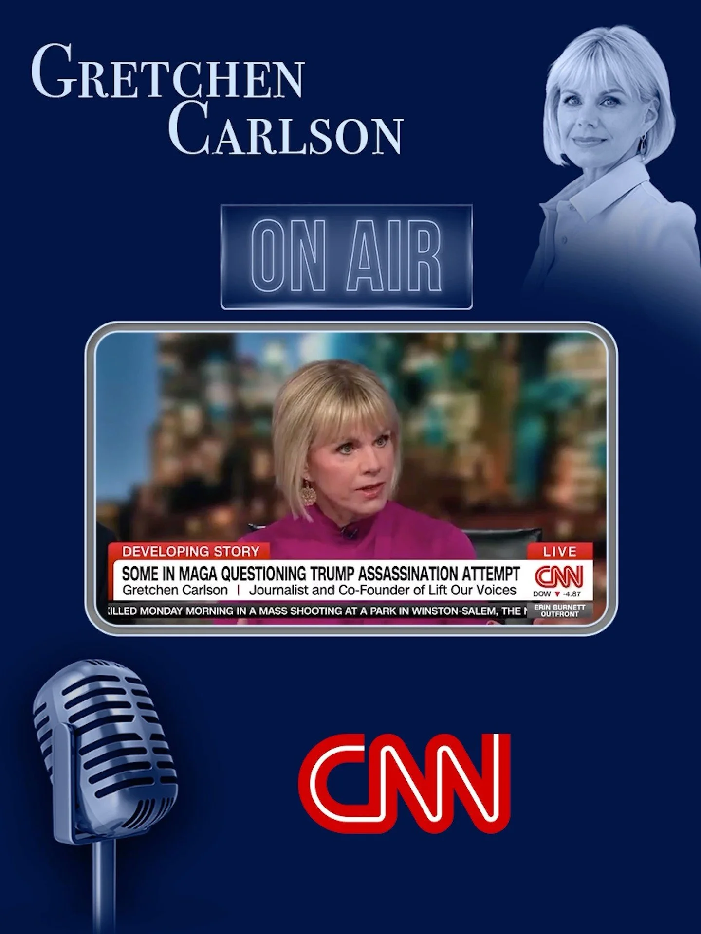 Gretchen is no stranger to your screen, having spent over 30 years as a journalist. She notably hosted the Saturday edition of The Early Show on CBS News, Fox News’ Fox & Friends, and The Real Story with Gretchen Carlson.